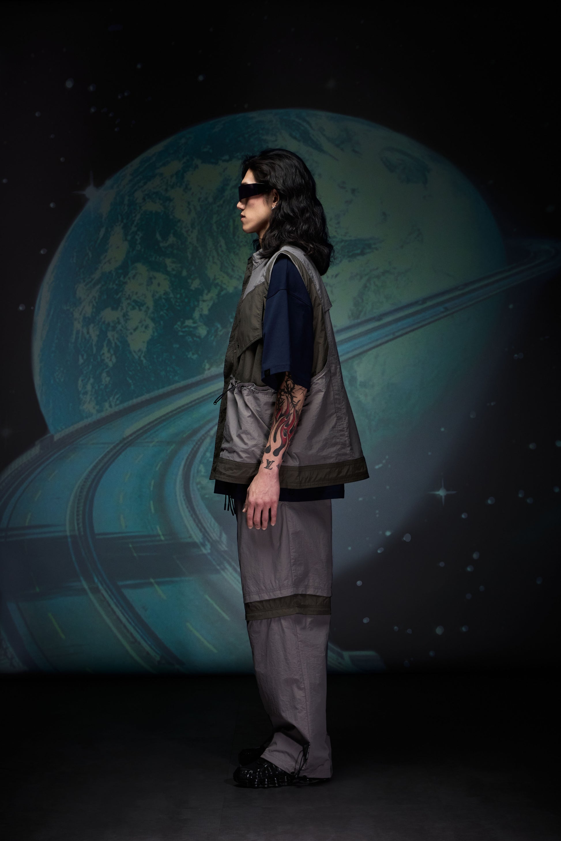 The trouser legs are decorated with brand identification woven labels and adjustable drawstrings, which are full of details.
