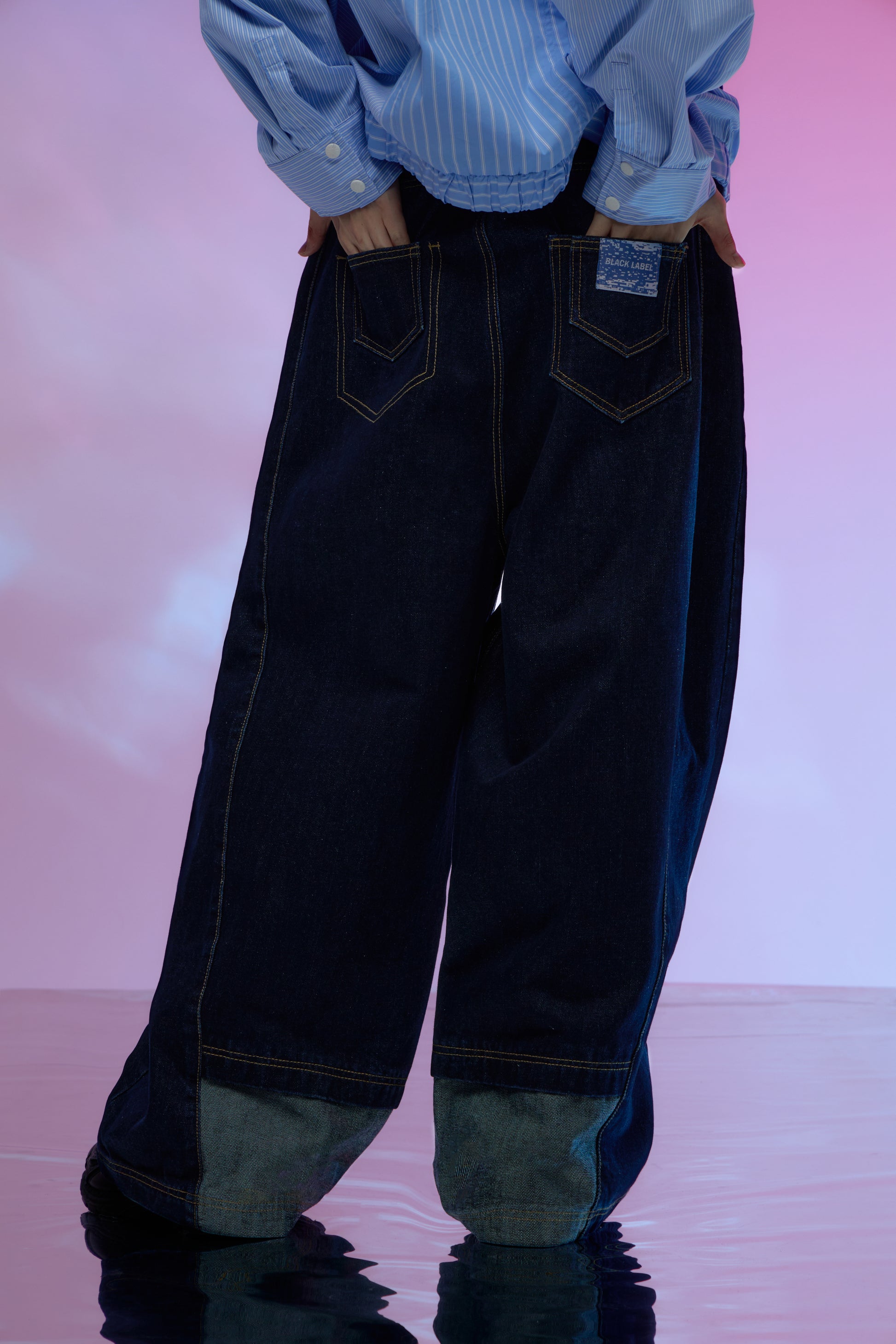 - The side edges are decorated with BK hexagonal buttons to create a three-dimensional effect of multiple folds and stacking, reinterpreting the silhouette of traditional straight-leg pants and injecting more experimental and design sense.