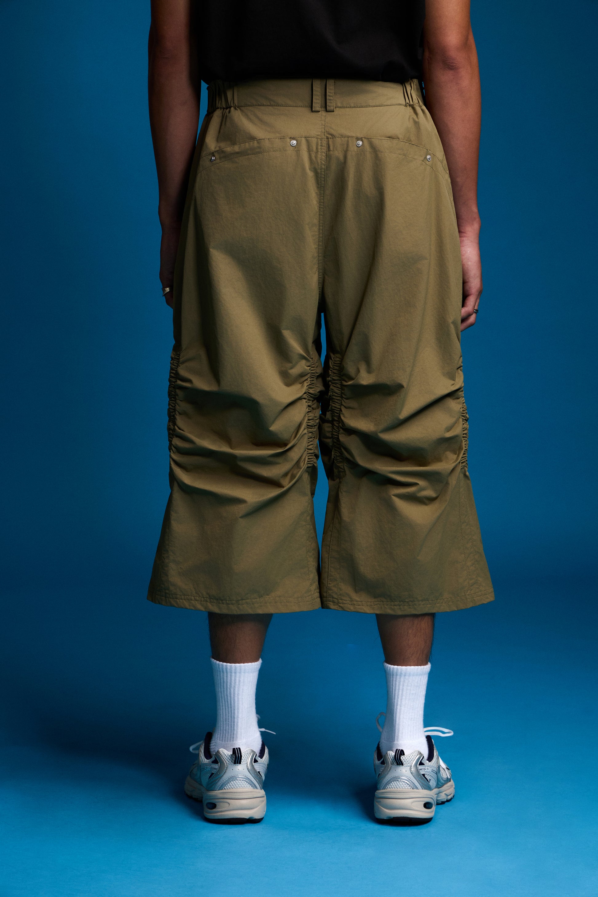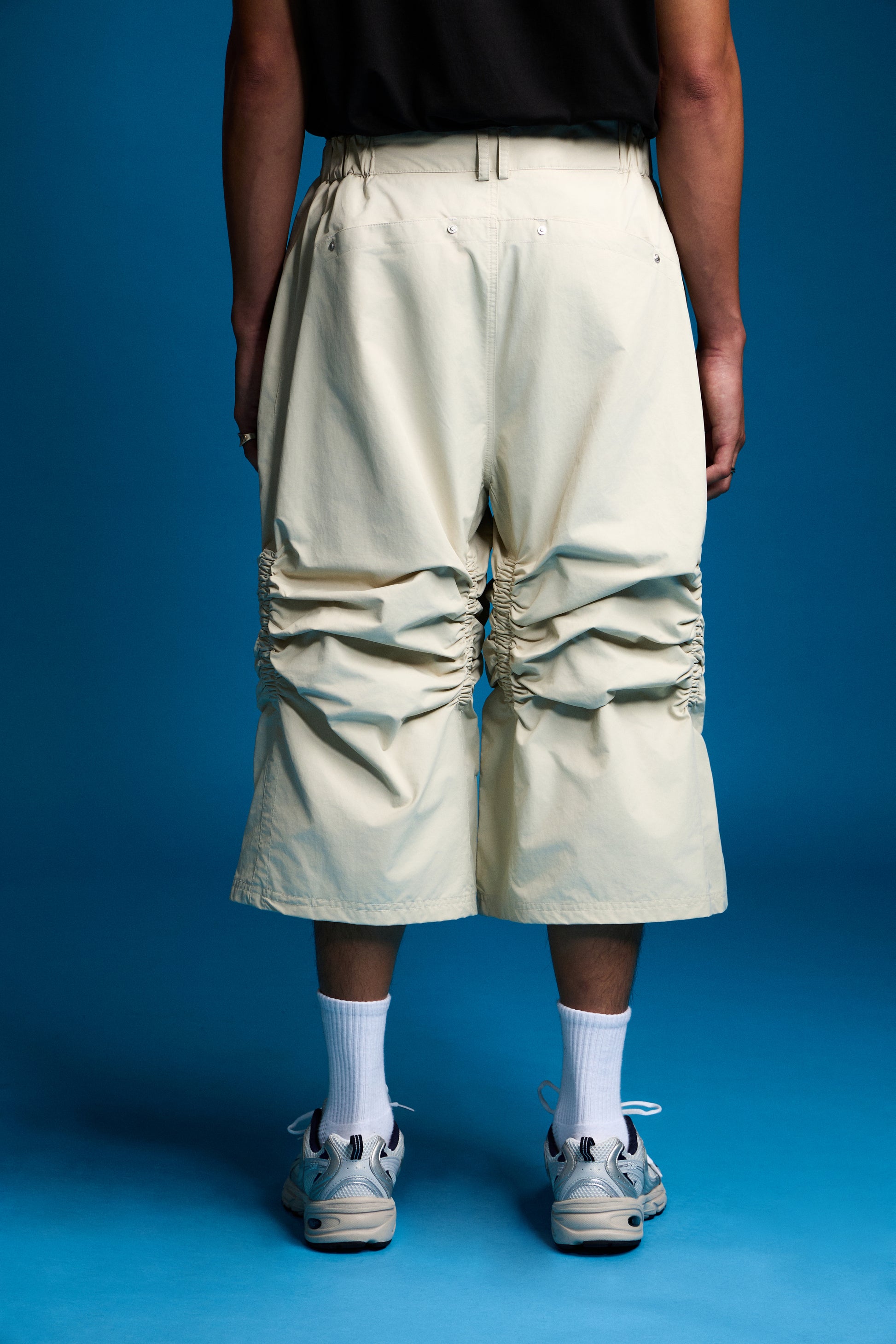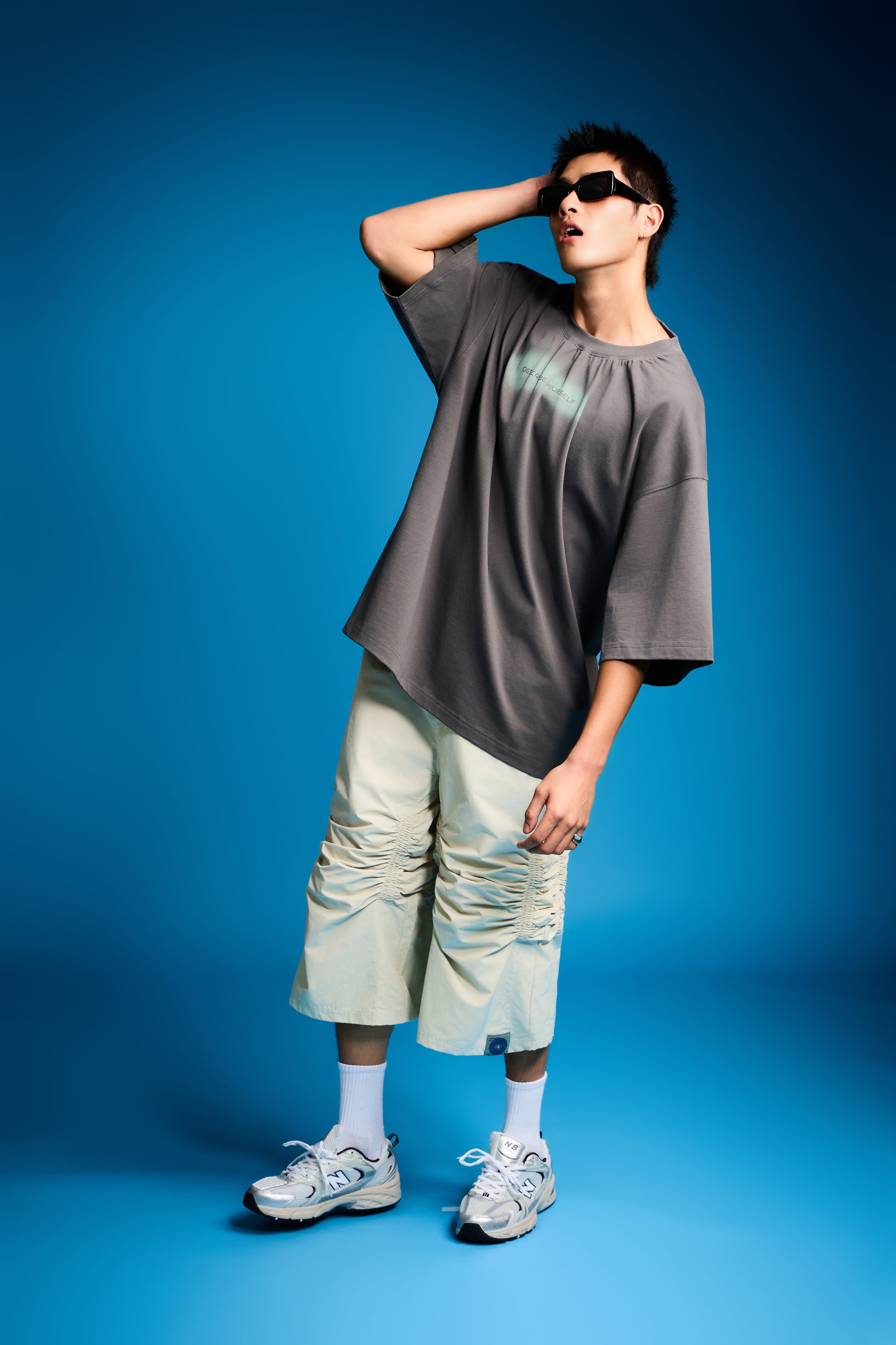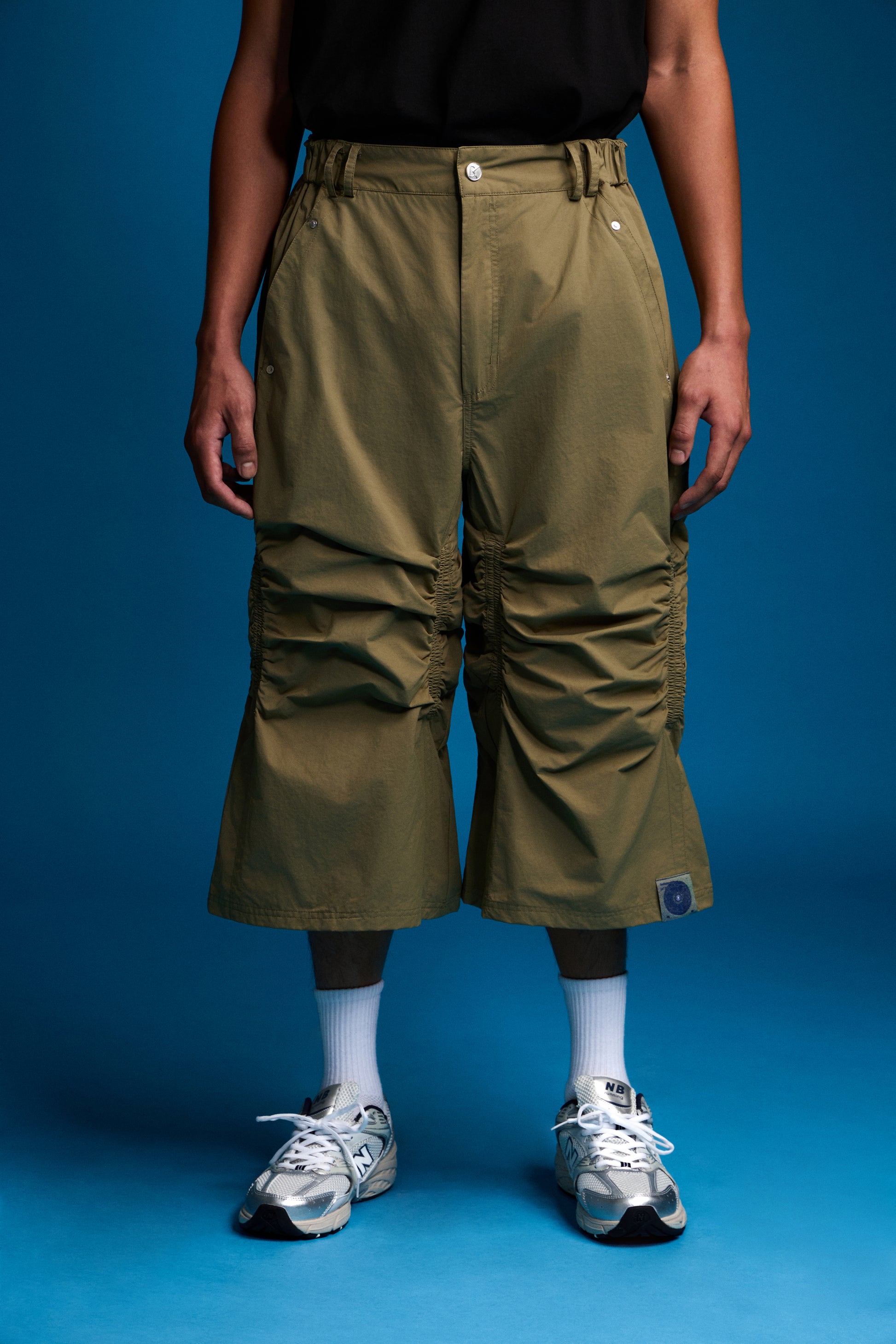 - 膝側以抽皺設計營造出立體感,巧妙改變褲身整體廓型。