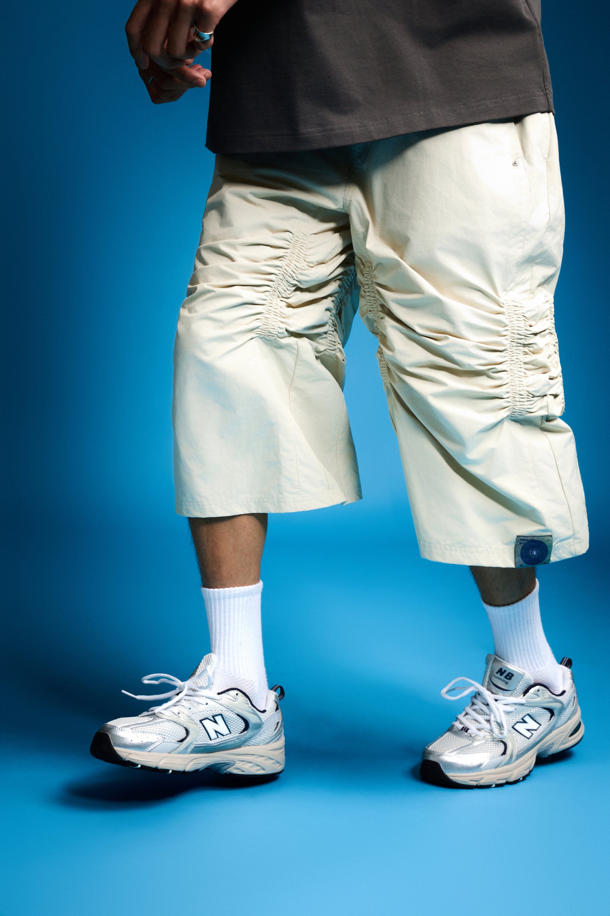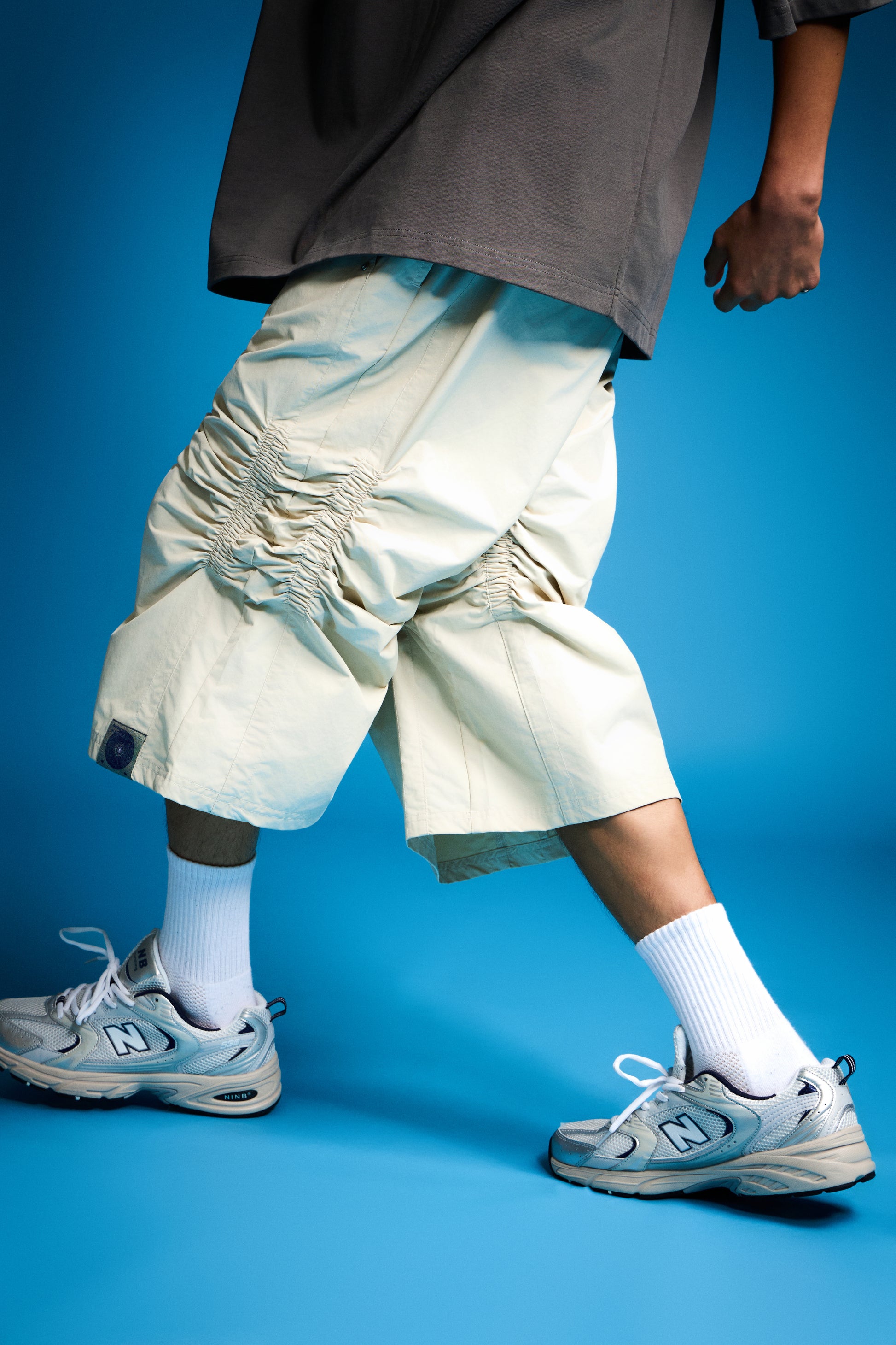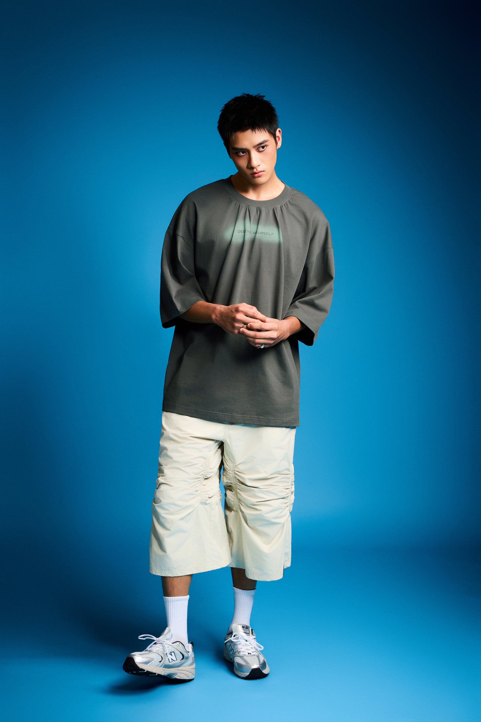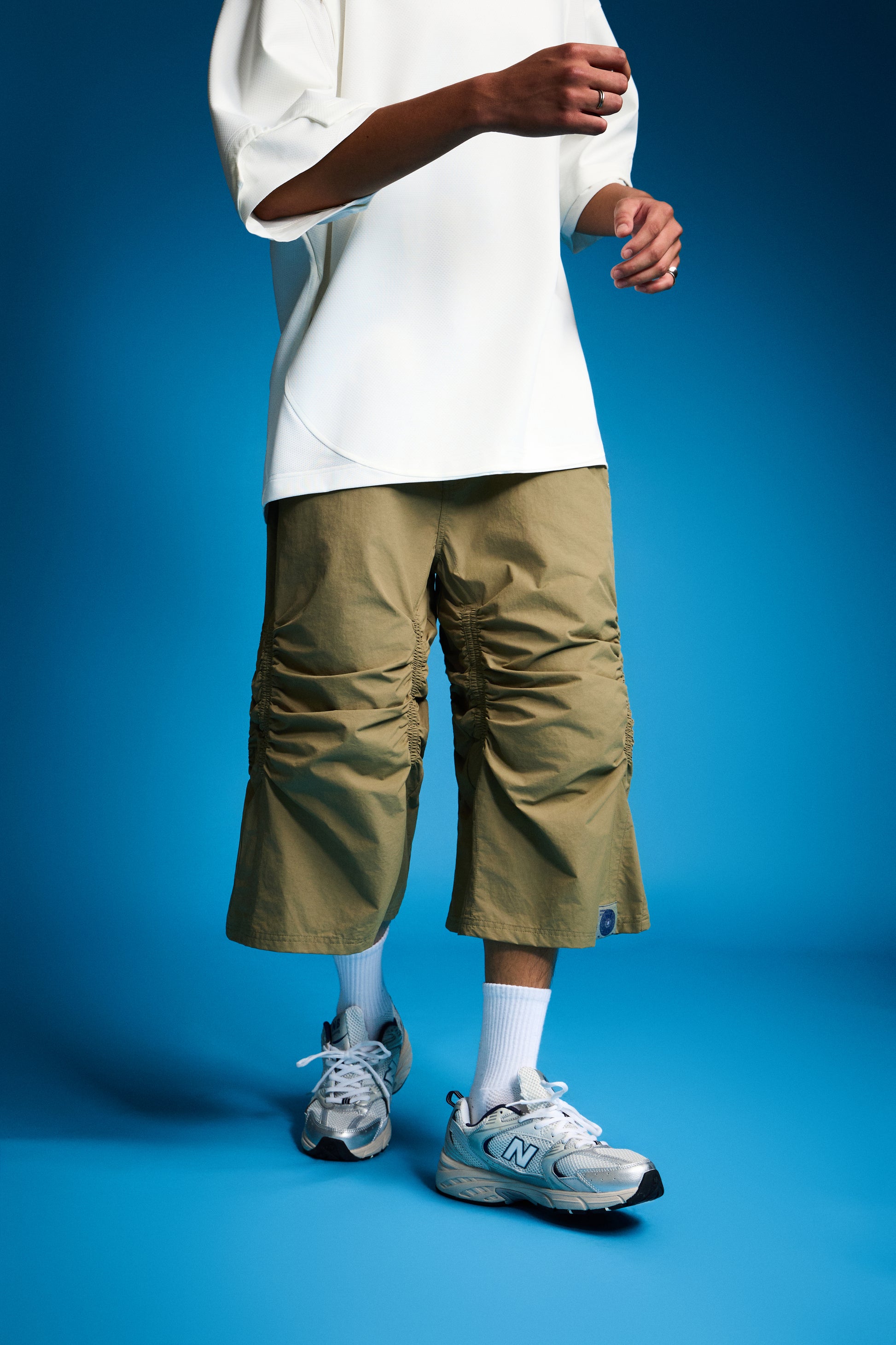- 膝側以抽皺設計營造出立體感,巧妙改變褲身整體廓型。