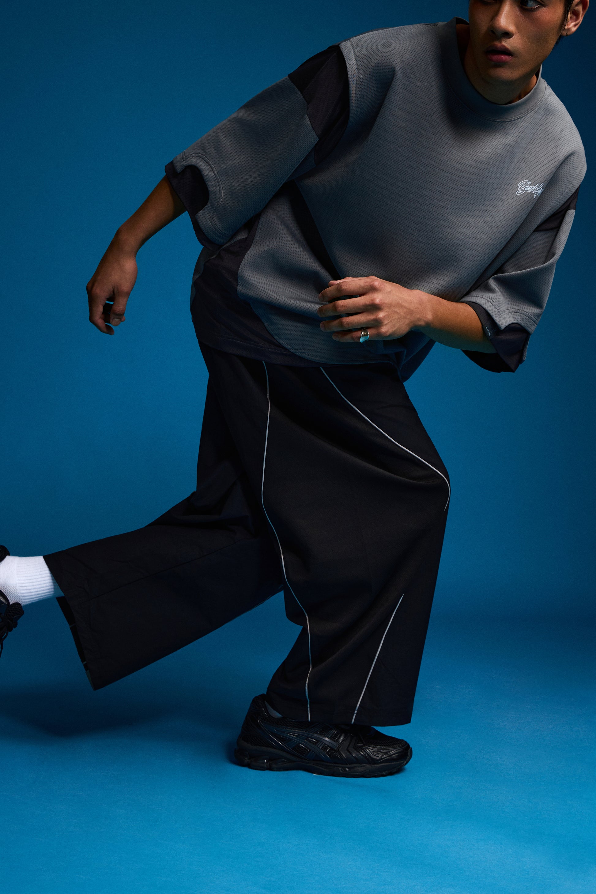 - 異材質剪接設計作為層次基底,搭配撞色出芽細節,營造出鮮明的運動感。