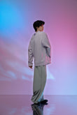 後背剪接加入夾標細節,呼應主題並增添造型亮點。