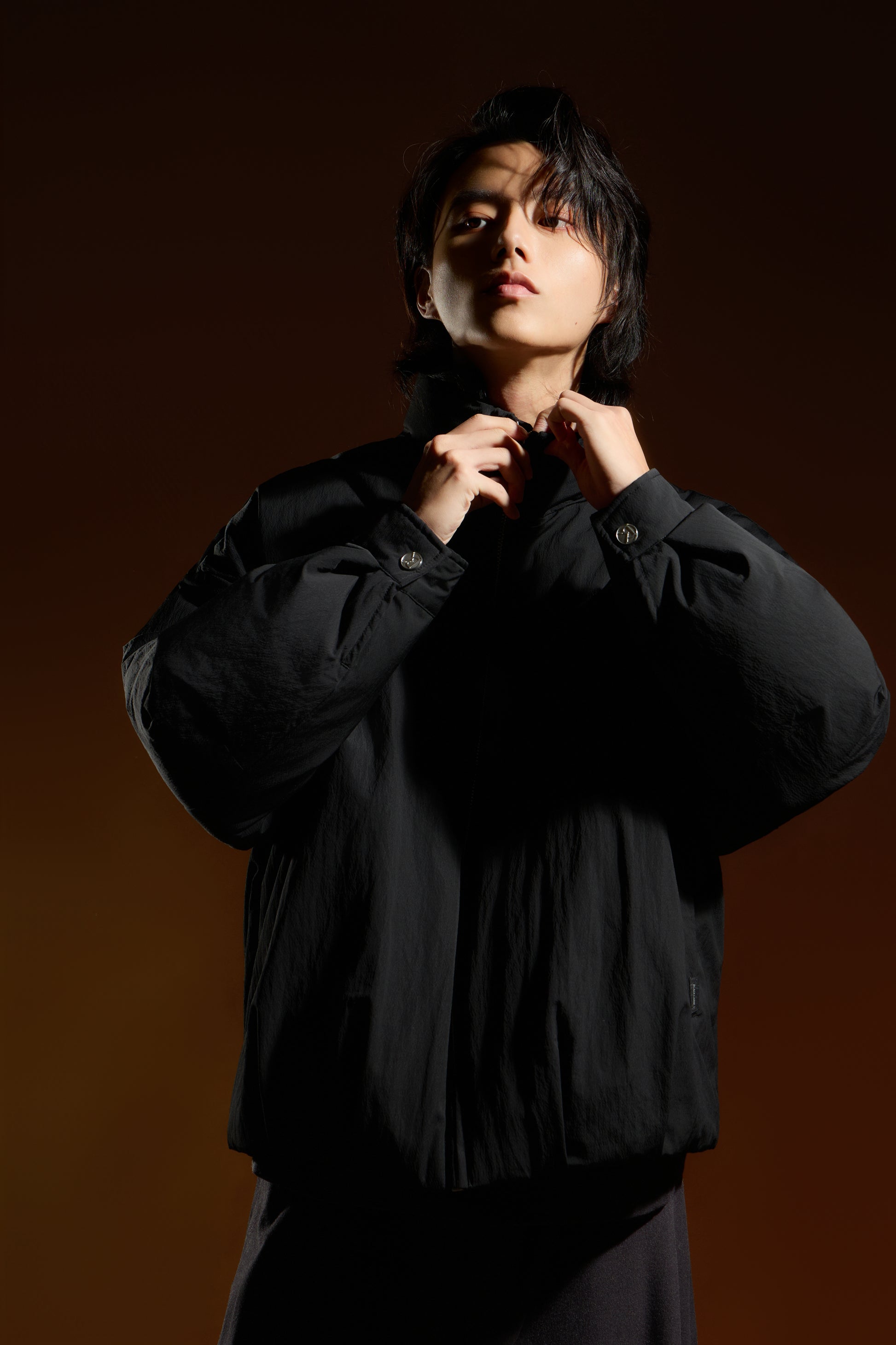 中高領剪裁提供良好包覆度,禦寒同時展現俐落線條