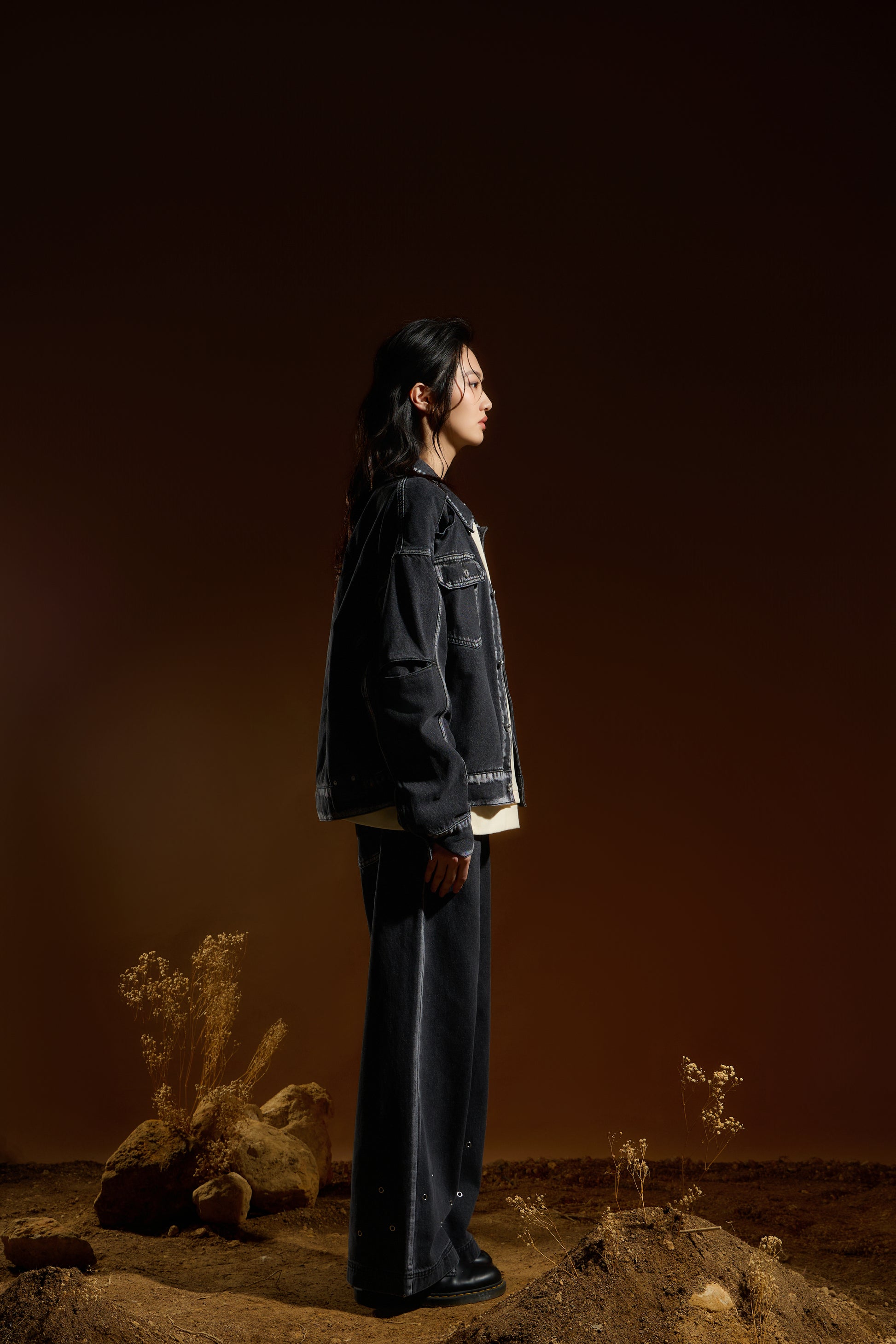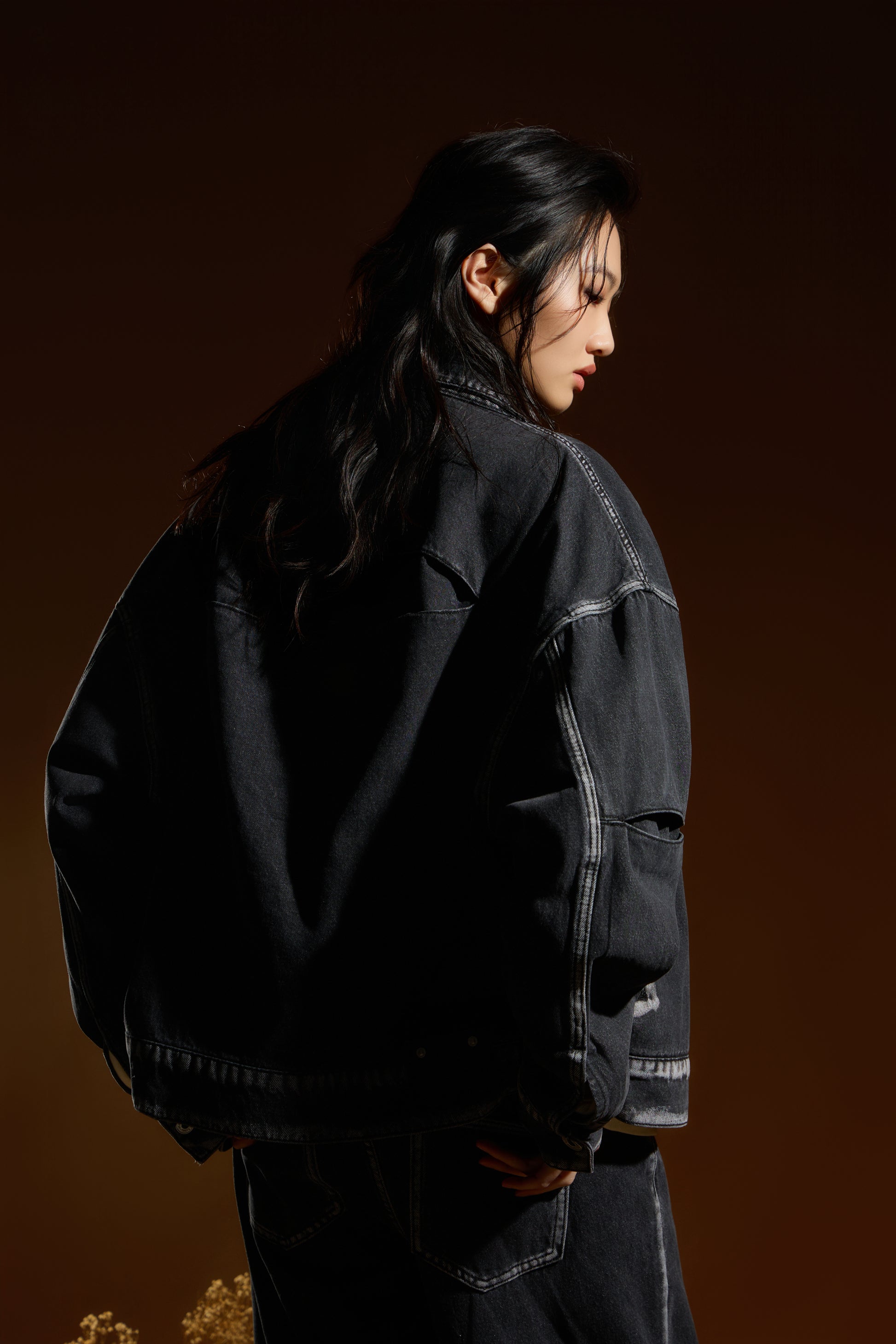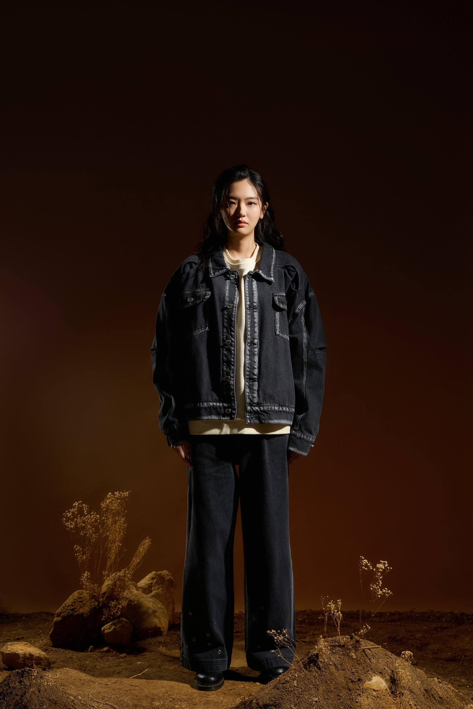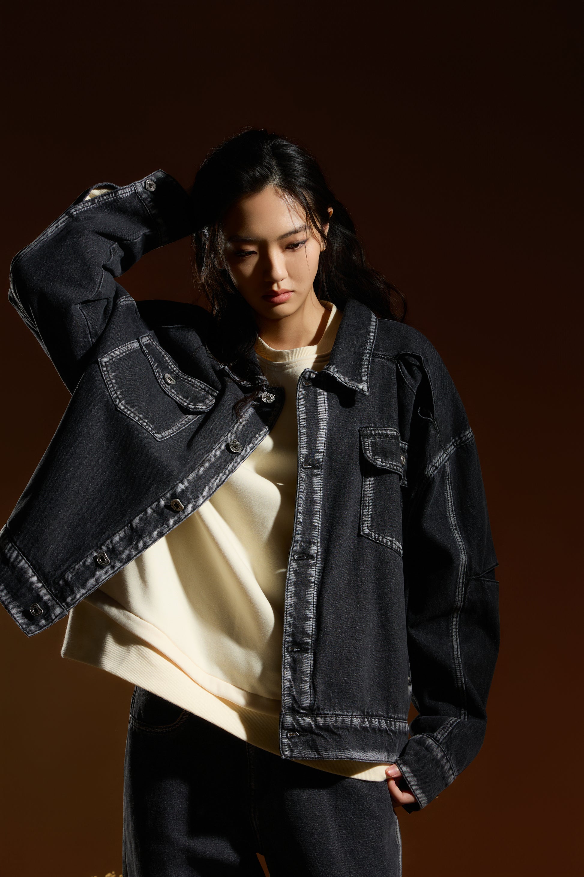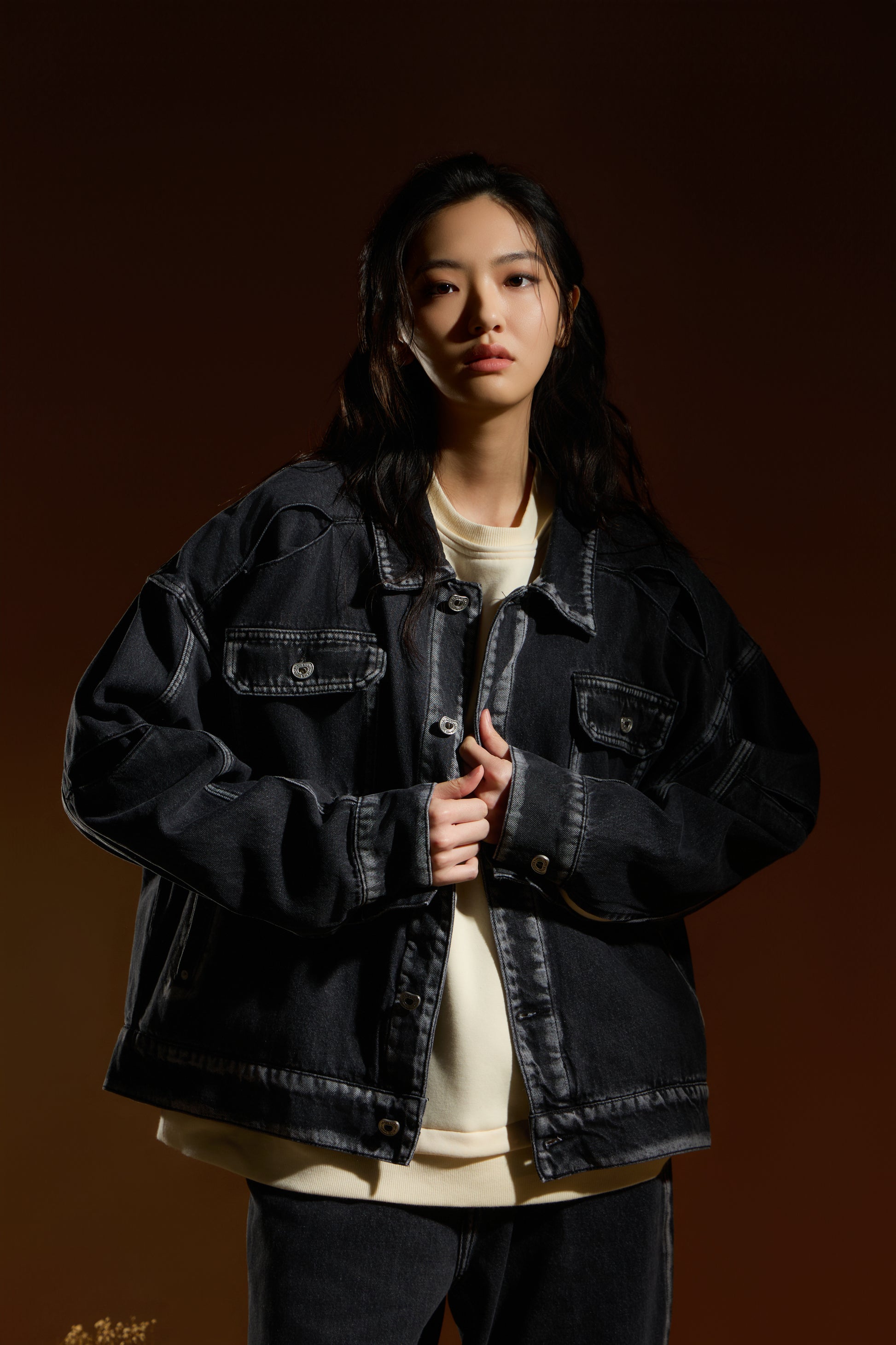 剪接處刷白處理 — 透過刷白工藝延伸剪接線條,細節自然浮現,強化視覺深度。