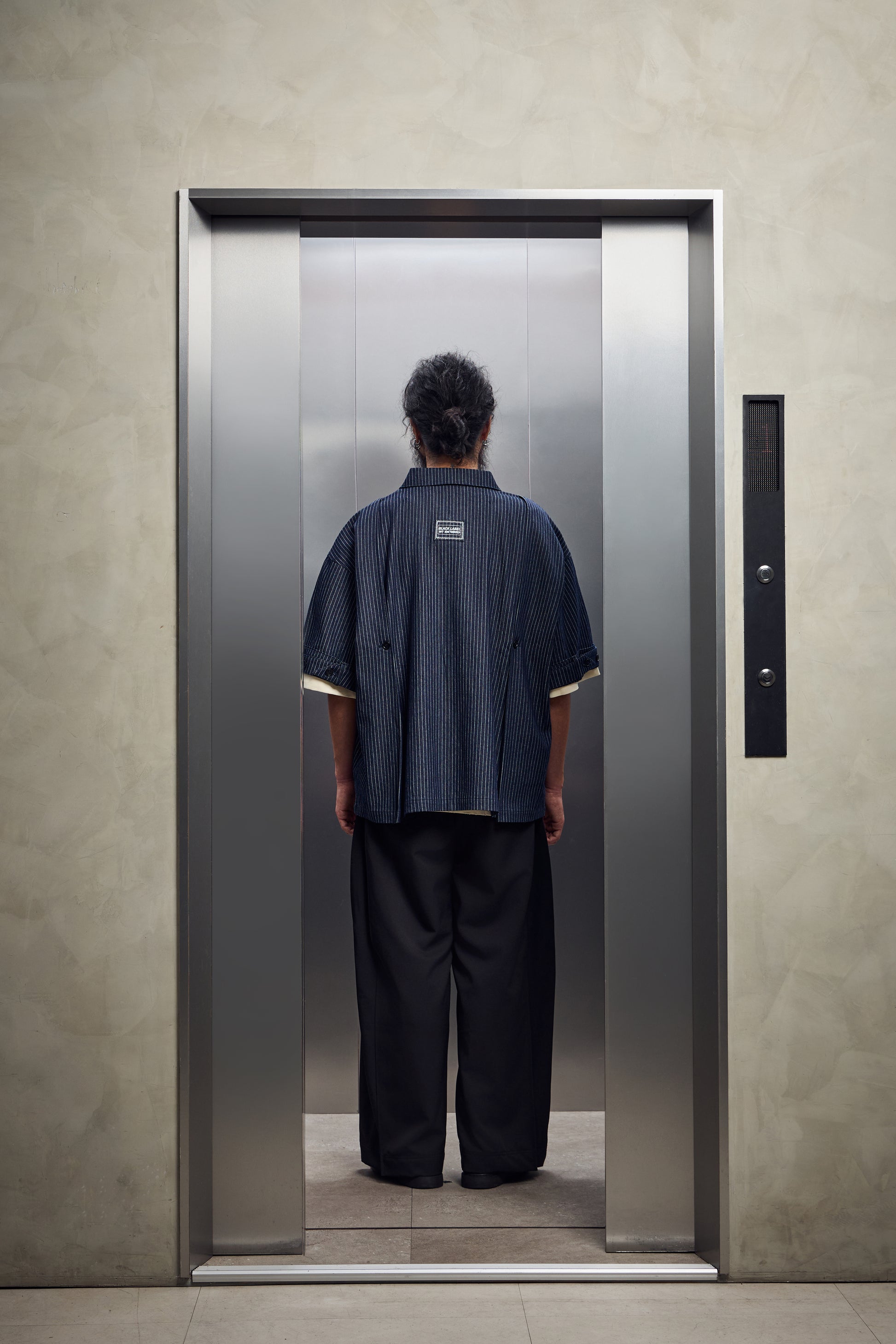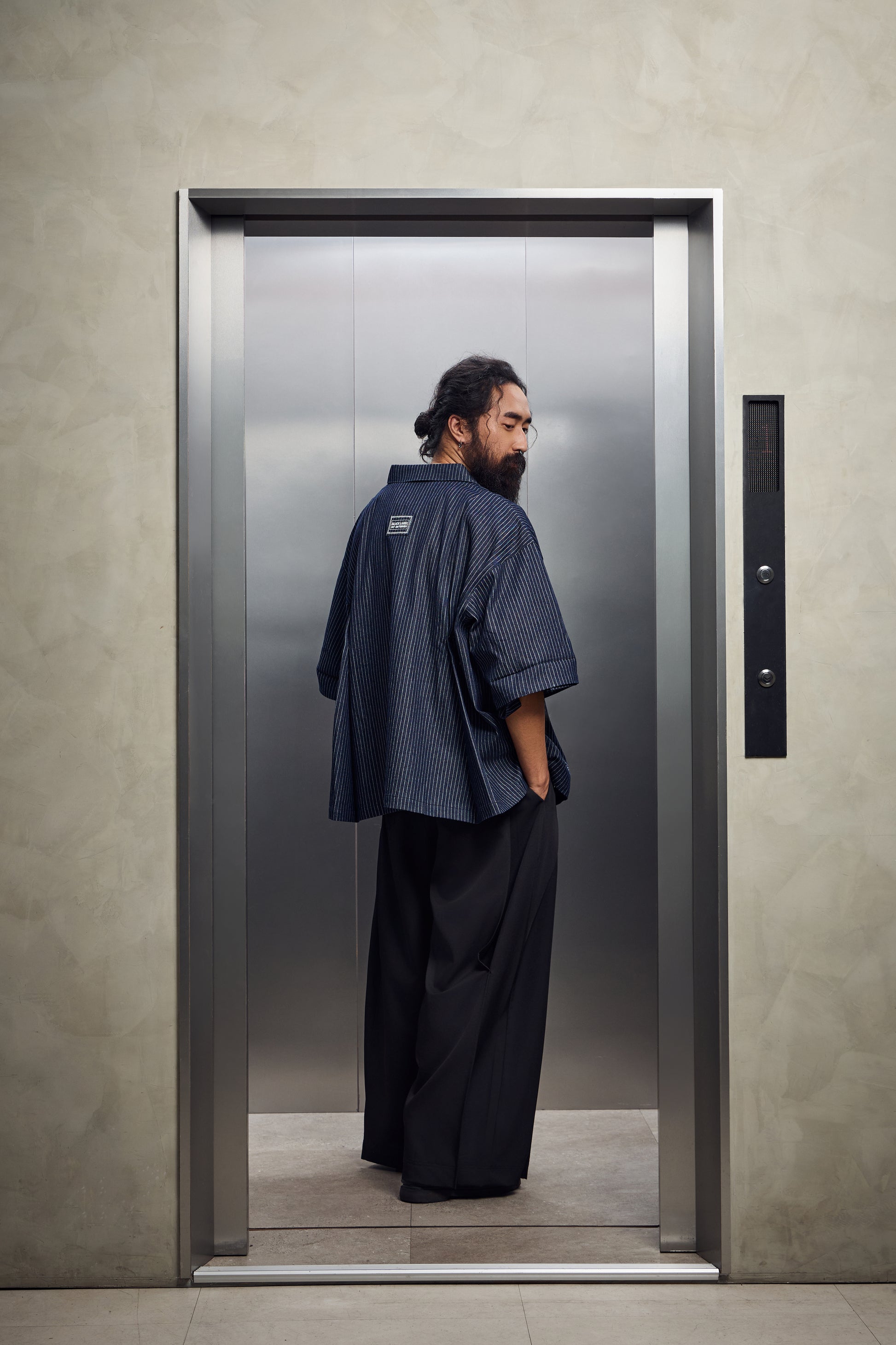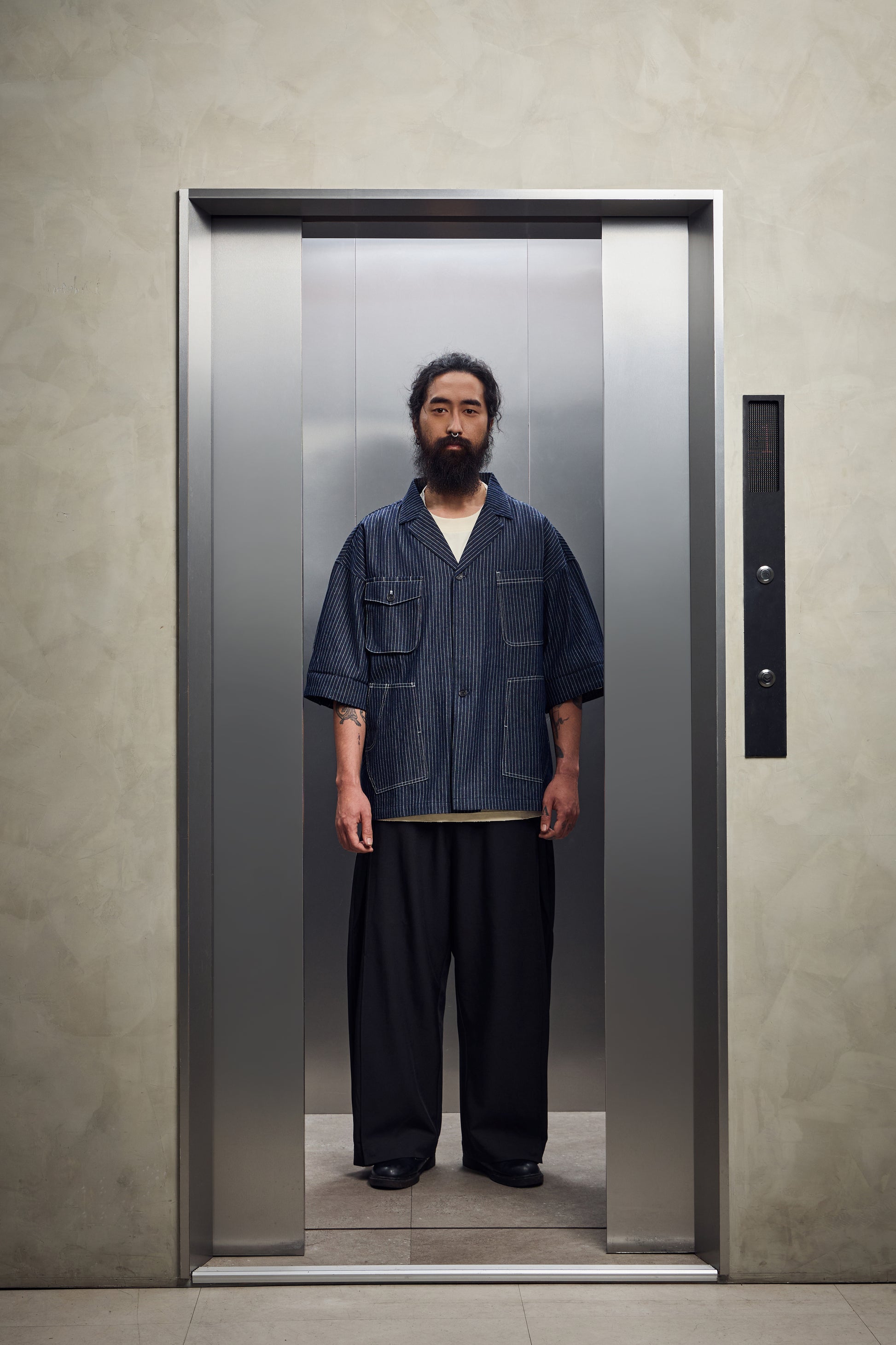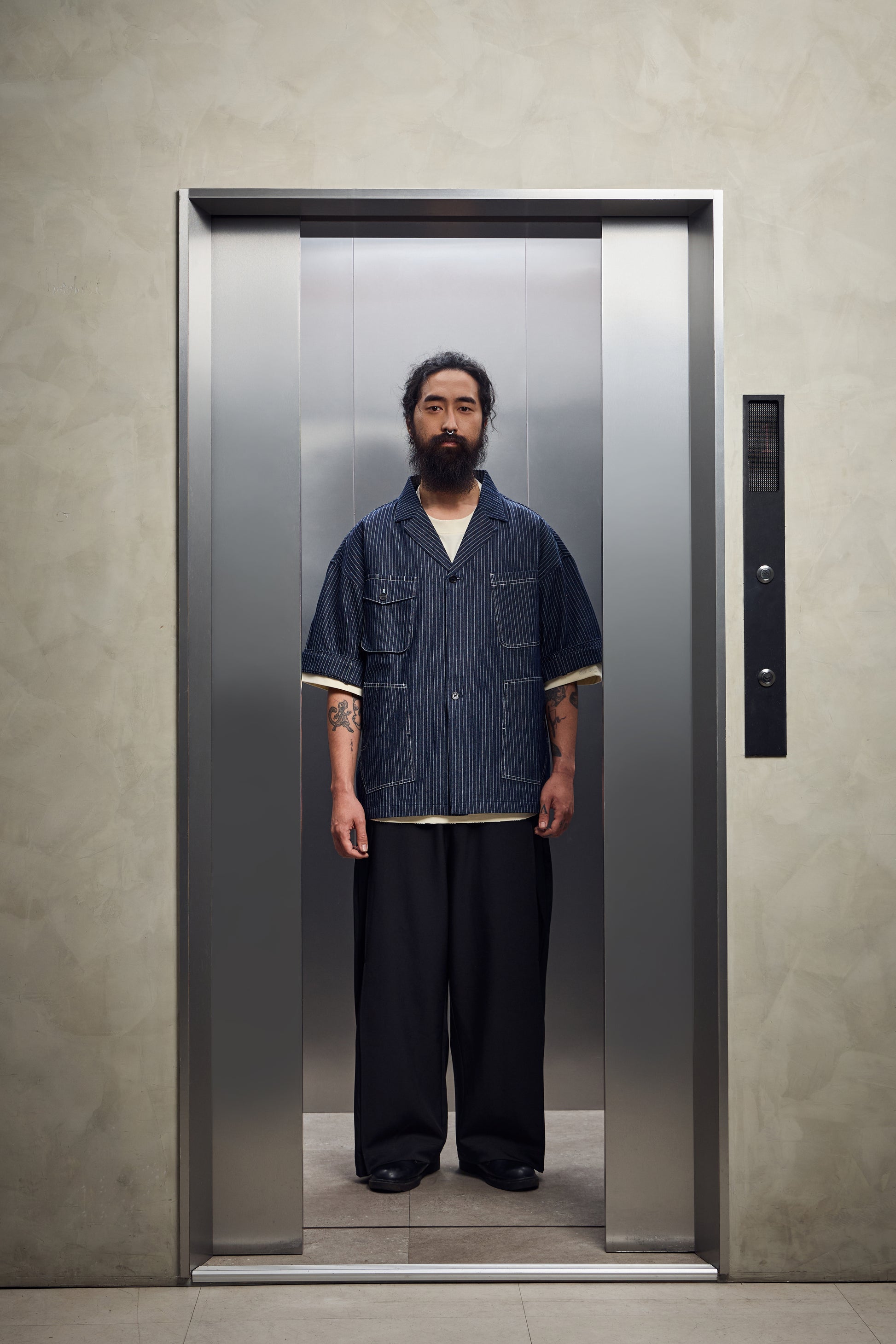 水洗條紋丹寧,反摺袖口與多口袋,像藍領制服般實穿,背後繡字限量細節,白領與藍領之間自由穿梭。