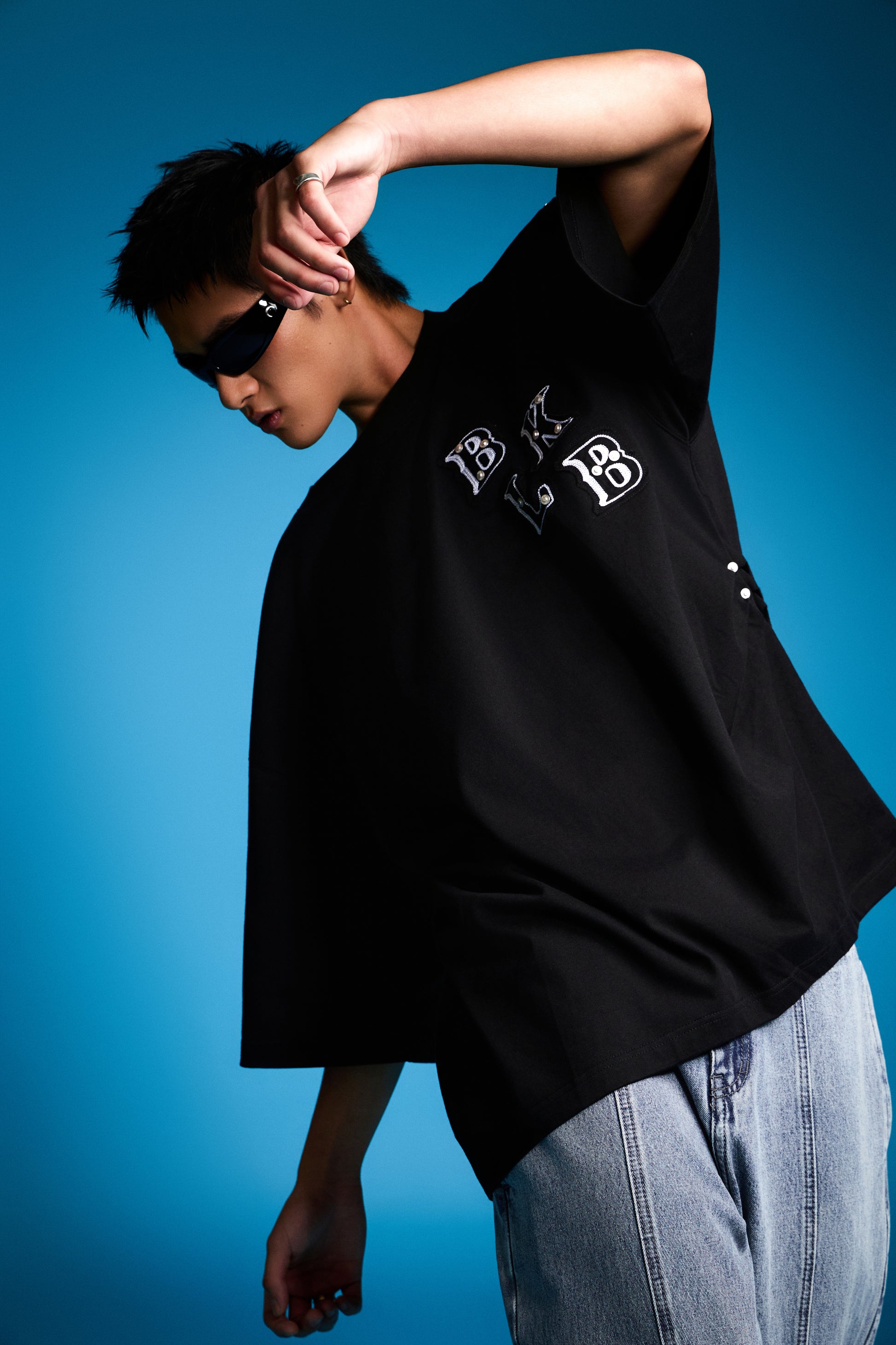 - 胸前品牌標誌性的字母,以貼布繡工藝呈現,增添細節與識別度。
