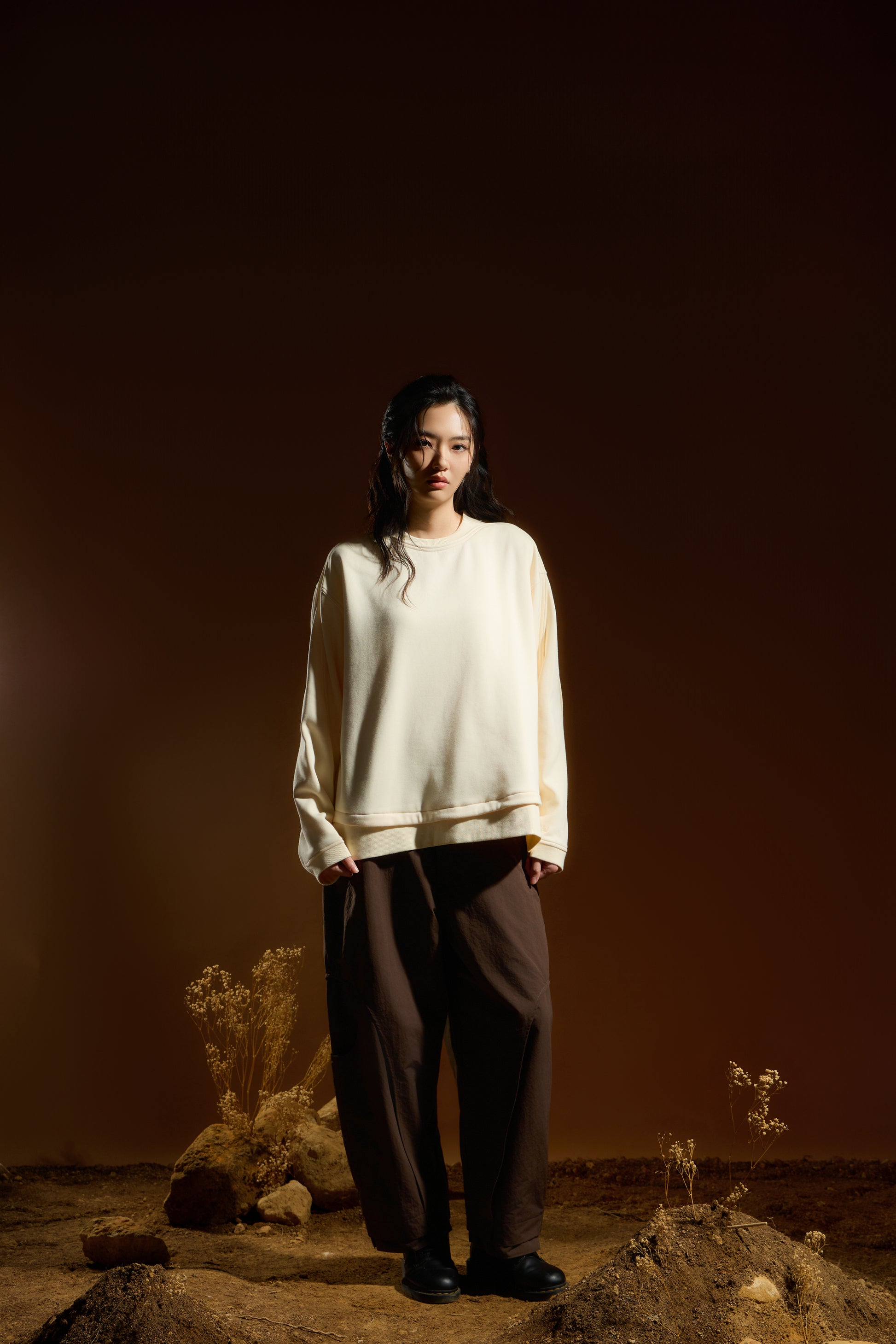 解構式假兩件層次設計 — 透過結構重組打造假兩件視覺,為褲型注入鮮明焦點與層次變化。