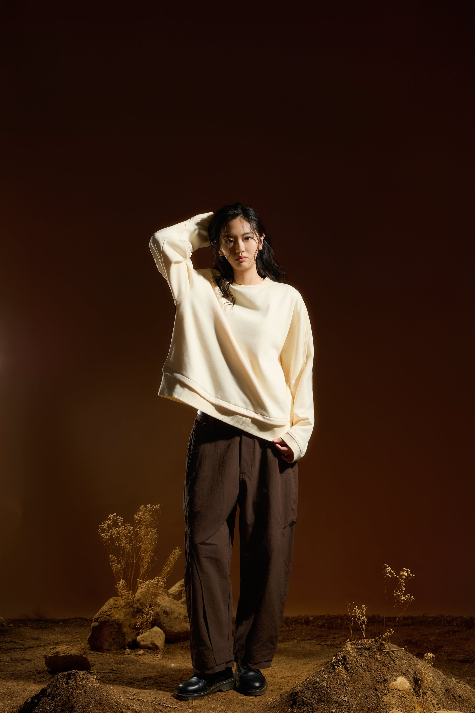 寬繭型輪廓 × 九分褲長 — 修飾腿型比例,視覺俐落不厚重,兼顧造型與實穿性。