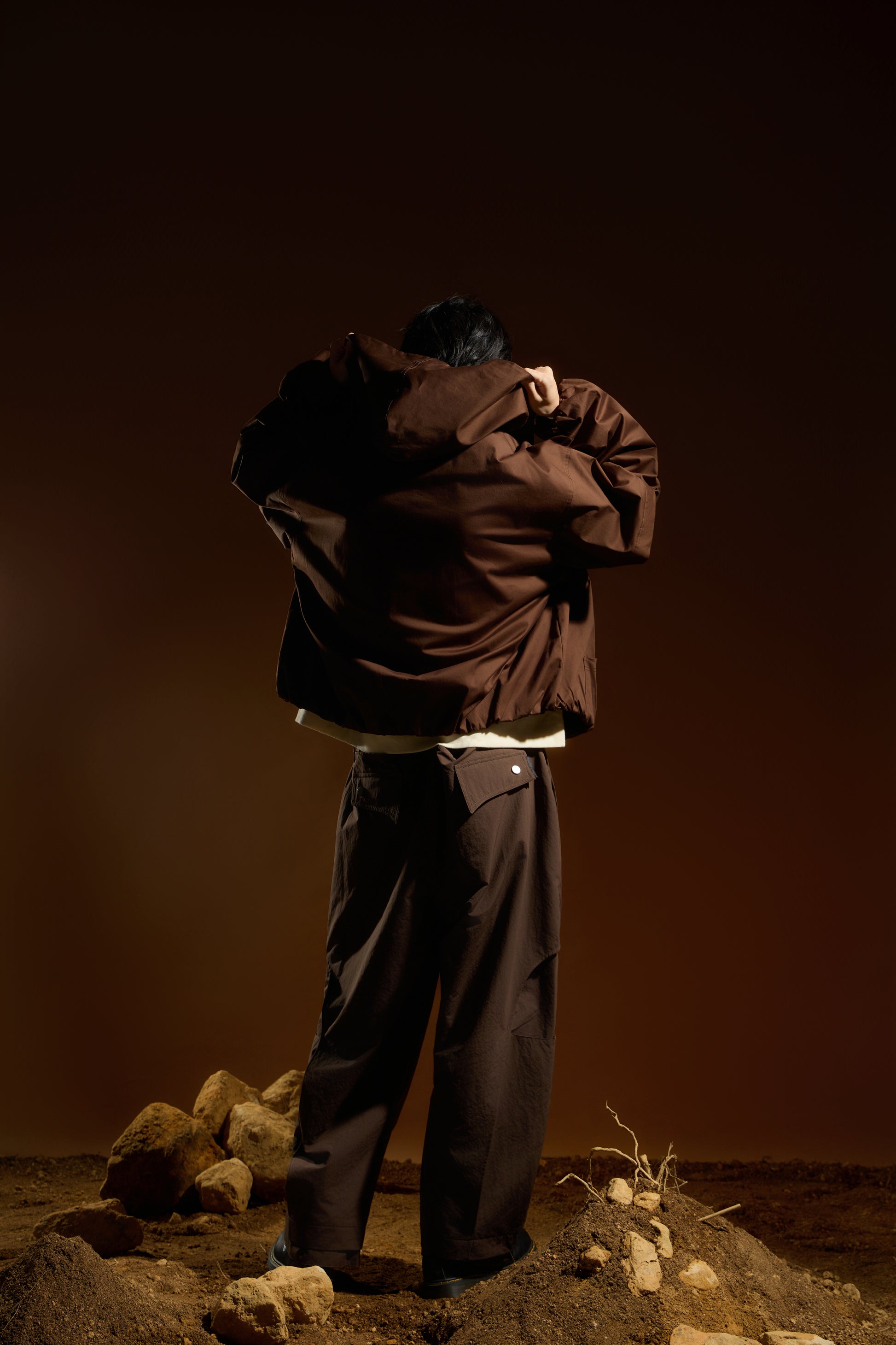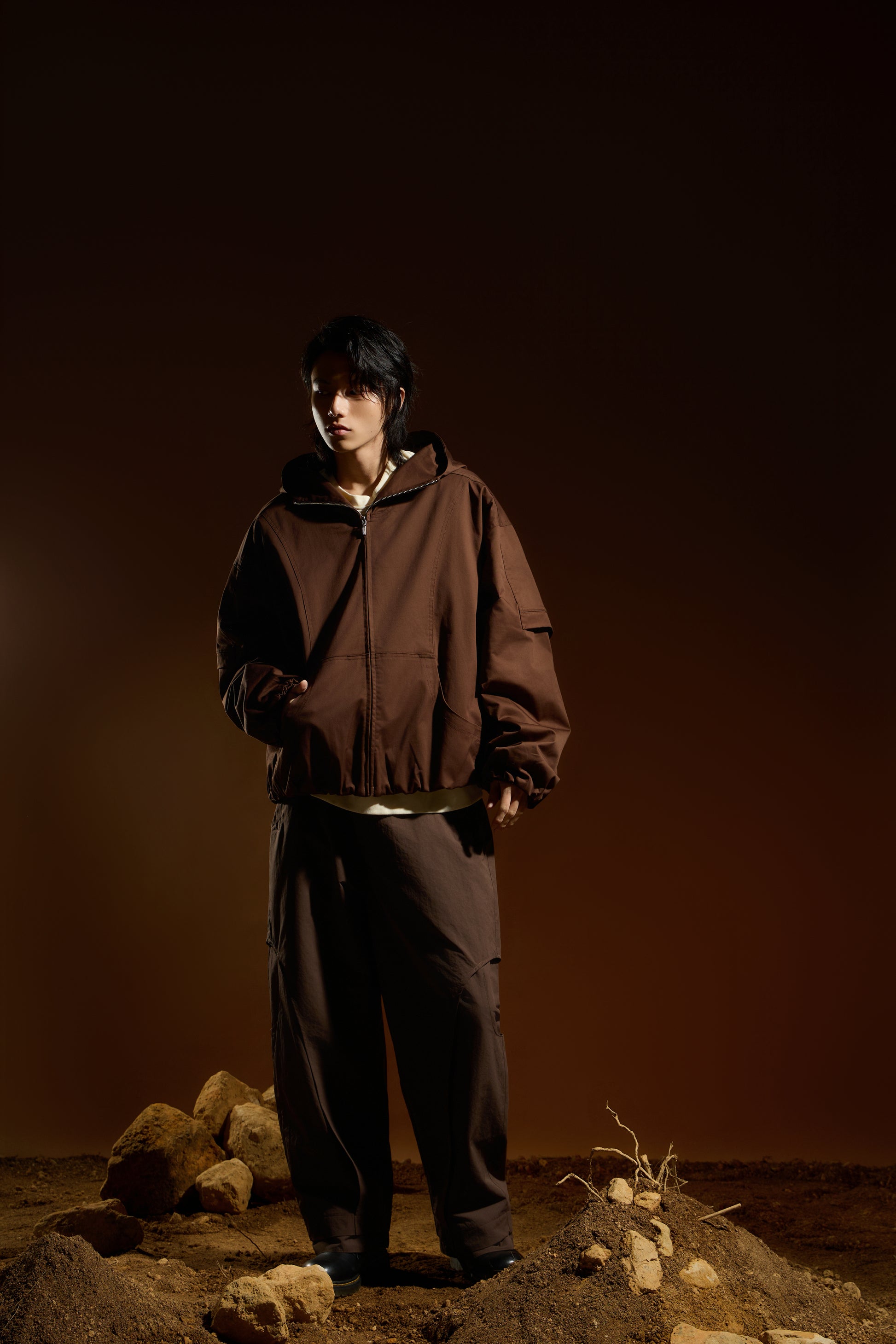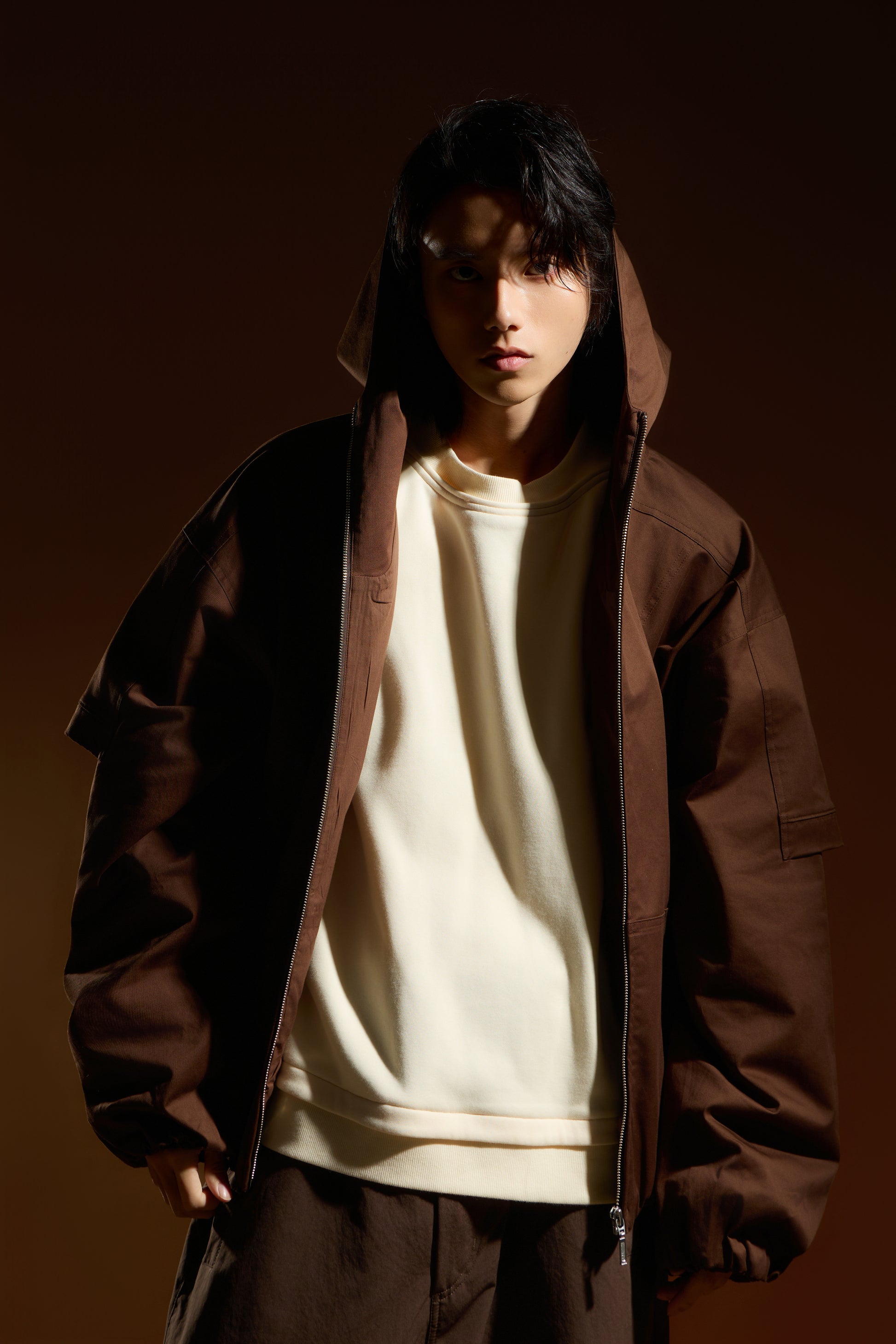 袖口搭配鬆緊束口細節,形成自然蓬度,平衡整體寬鬆比例