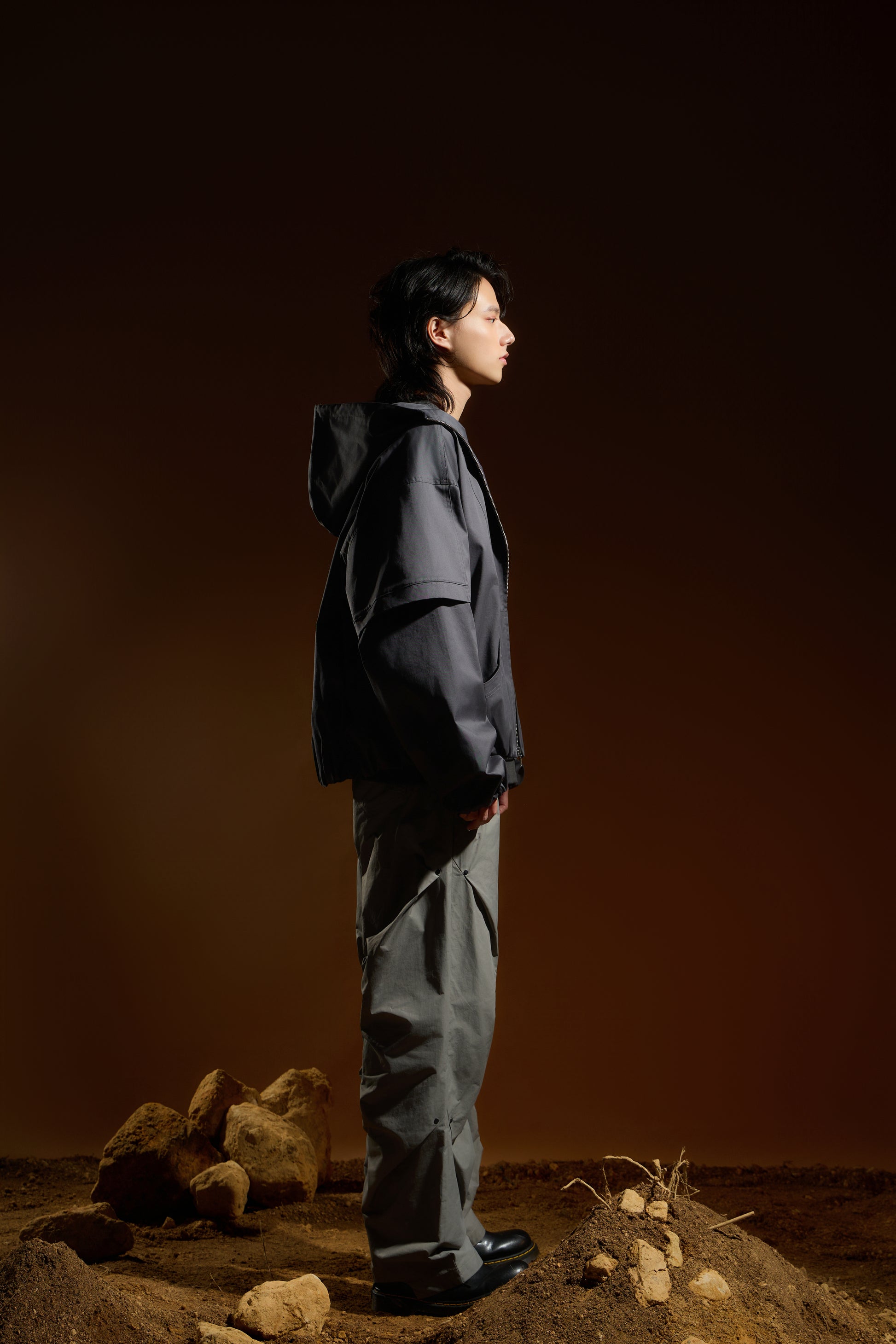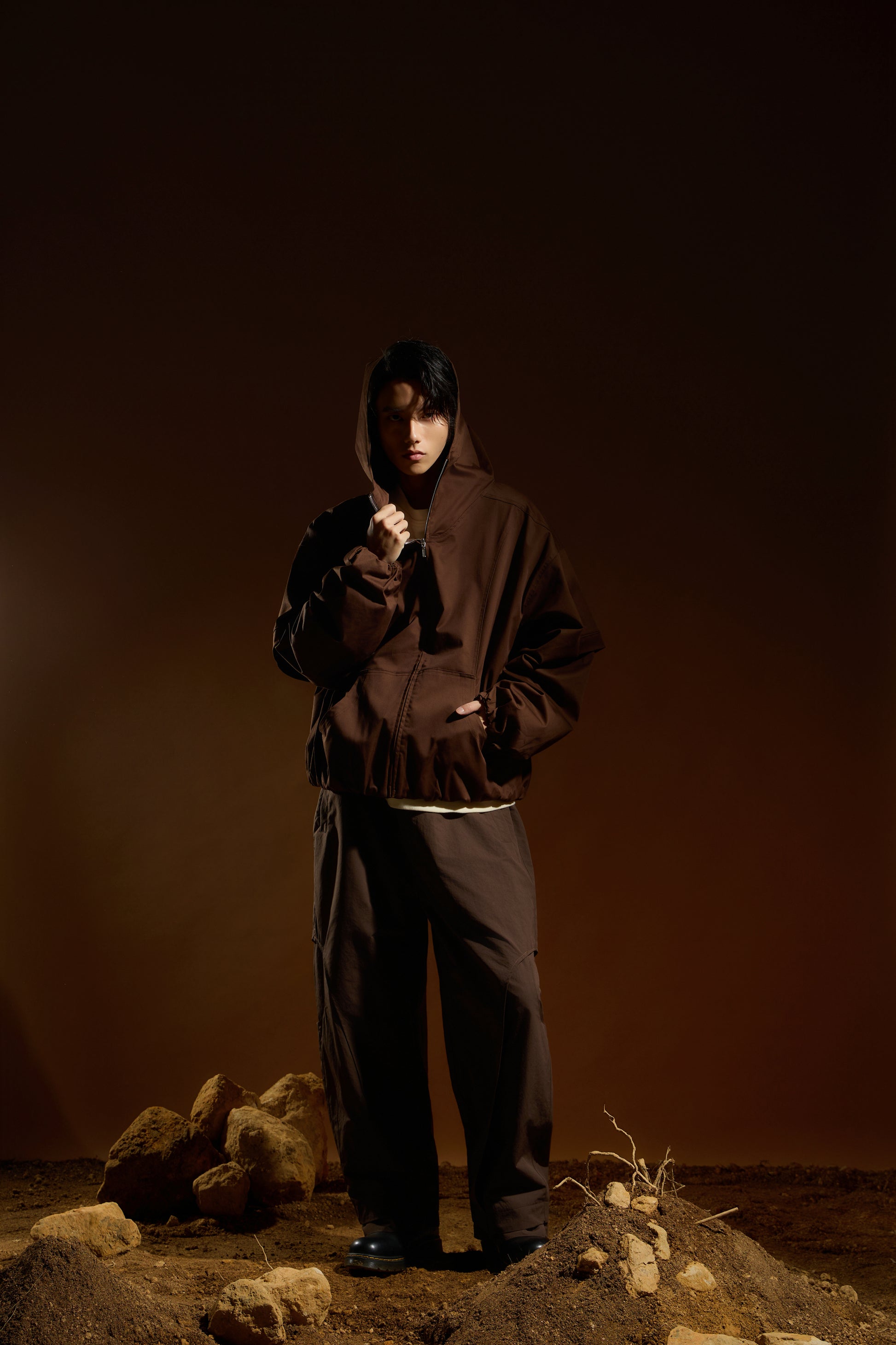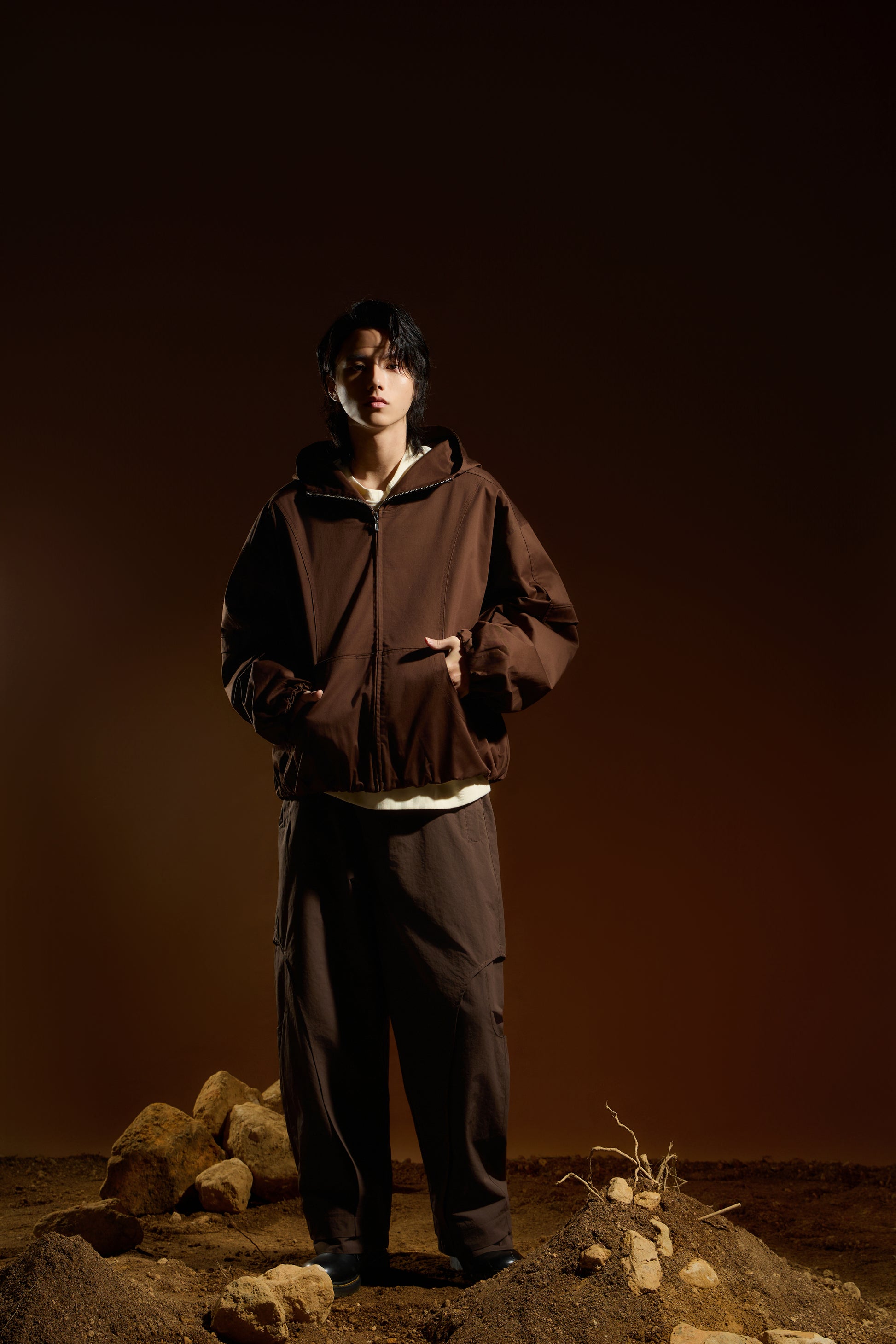 袖口搭配鬆緊束口細節,形成自然蓬度,平衡整體寬鬆比例