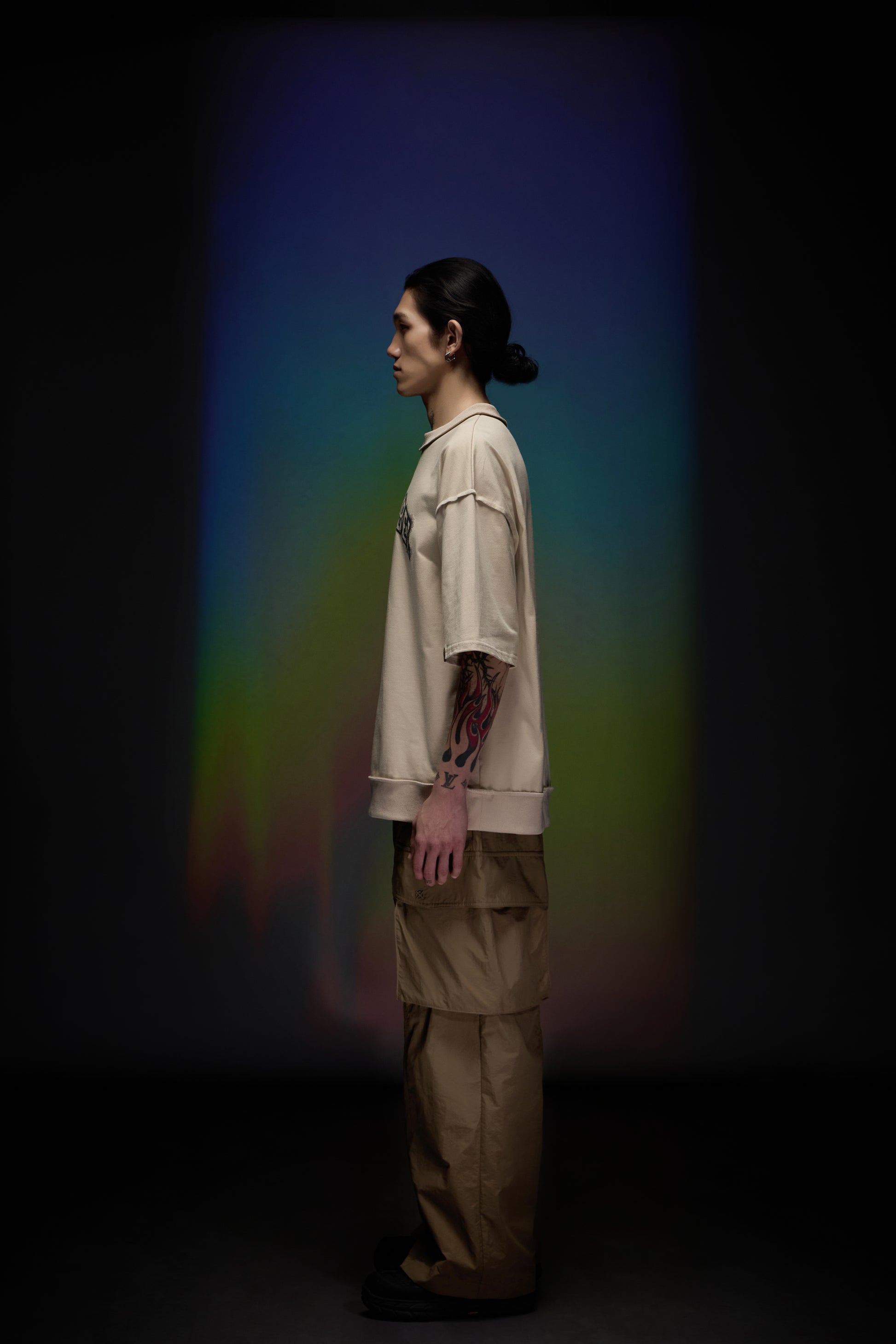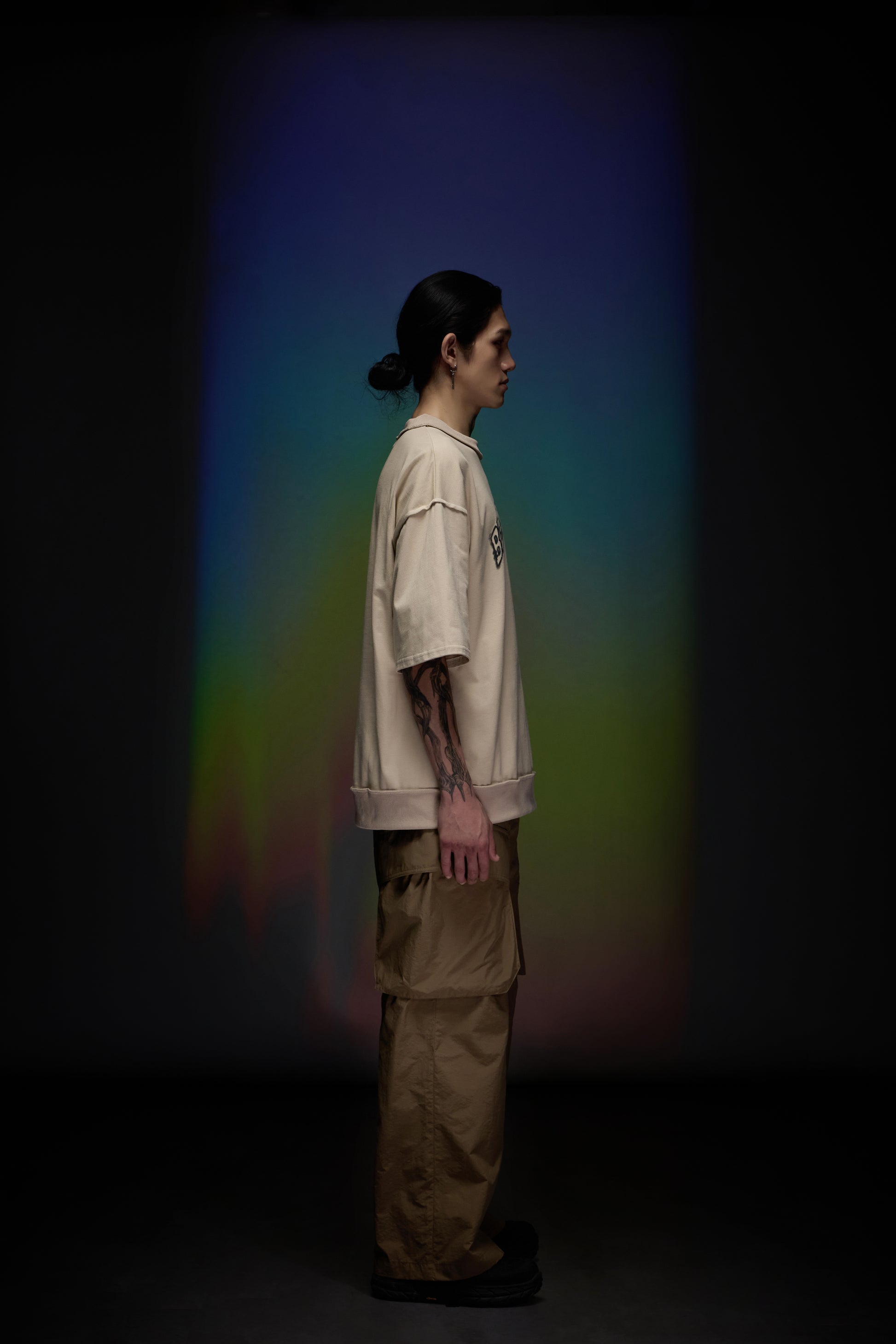 採用 100% 純棉毛巾布製成,厚挺扎實,水洗質感呈現